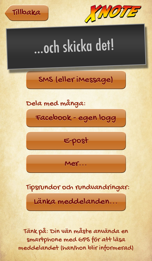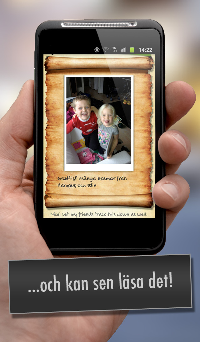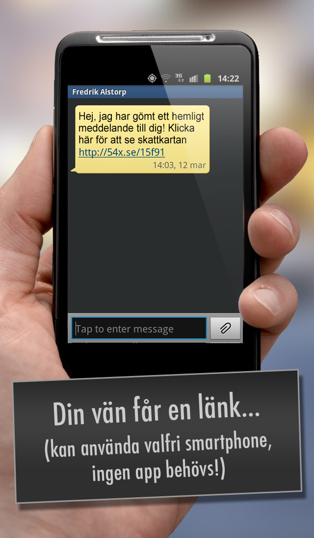 Skicka dina vänner på en Pokémon Go liknande skattjakt för att läsa dina meddelanden. Göm enskilda meddelanden eller länka ihop många. Skapa virtuell geocaching, skattjakter och tipsrundor. Lika lätt som att skicka ett SMS!